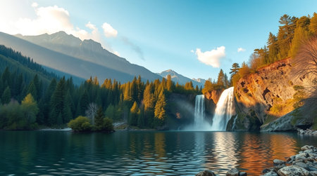 Breathtaking Waterfall in Serene Landscape