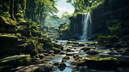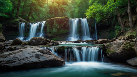 Waterfall in the forest, beautiful photo digital picture for your design