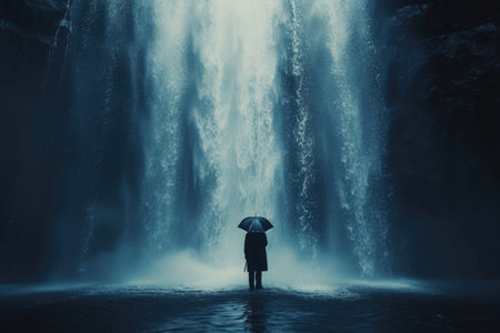 Mystical Waterfall Serene Nature in Darkness