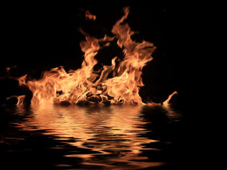 Flame reflection on water with dark background