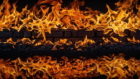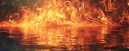 A fire background with flames reflecting off a body of water, creating a mesmerizing and dynamic scene.