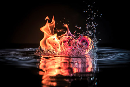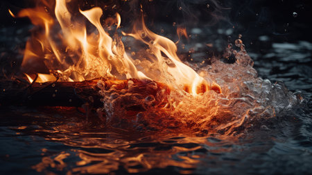 AI Generated. Flame and water interaction creates stunning visual effects in a dark setting