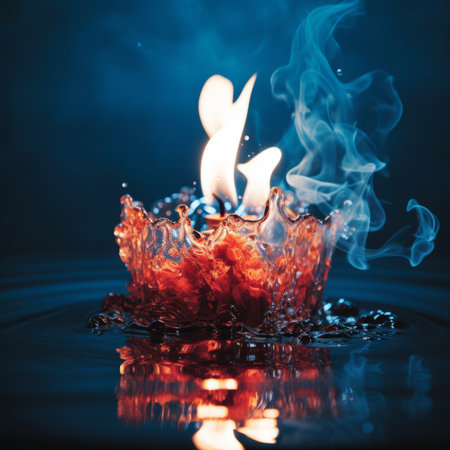 Stunning visual contrast as flames entwine with splashing water