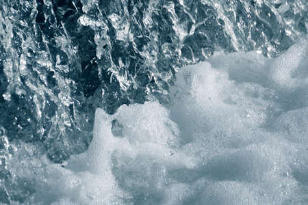 Blue bubbling water of mountain river. Ocean tide of turquoise sea