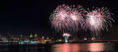 Lighting up the sky with fireworks high above the city of Liverpool.