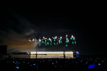 Colorful fireworks and Gwangan Bridge in Busan City, South Korea.