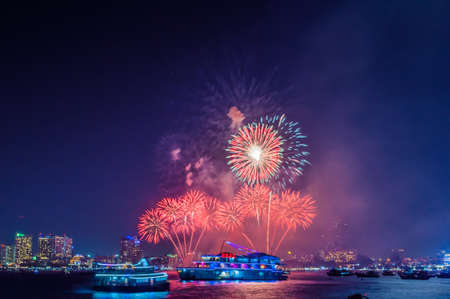 Fireworks show at Pattaya beach, Chonburi, Thailand
