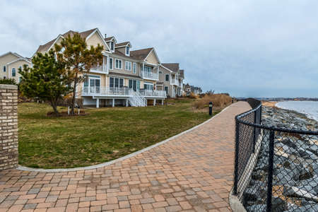 SOUTH AMBOY, NEW JERSEY-MARCH 27: Waterfront townhomes and condos on the Raritan Bay as seen on March 27 2018 in South Amboy New Jersey.