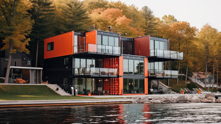 Modern metal color building made from shipping house containers. Ai generative