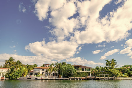 Miami, USA - April 24, 2022: Luxurious mansion in Miami Beach, florida at USA on April 24, 2022