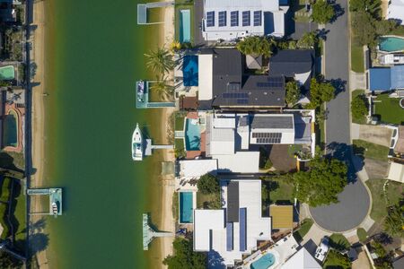 Waterfront homes on the sunny Gold Coast suburb of Broadbeach Waters, QLD, Australia