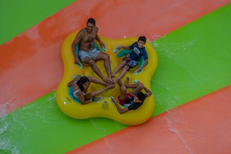Orlando, Florida. October 24, 2019. People enjoying Omaka Rocka attraction at Aquatica 29