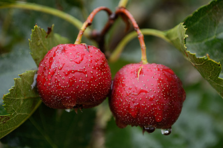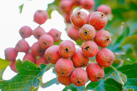 Hawthorn red hawthorn fruit grows on the tree