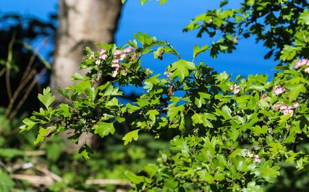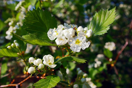 Flowering branch of hawthorn