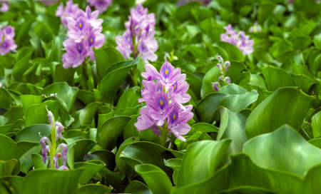Water hyacinth flowers. Pontederiaceae aquatic plants native to Brazil. Light purple flowers bloom from August to October.