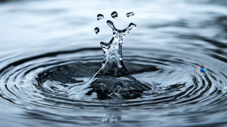 Captivating moment of water droplets splashing and creating ripples on a tranquil water surface, showcasing the beauty of liquid dynamics and reflections.