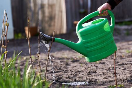Watering can on the garden, Watering the garden at sunset, Vegetable watering can. high quality photo