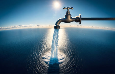 a water faucet pouring water into the sea