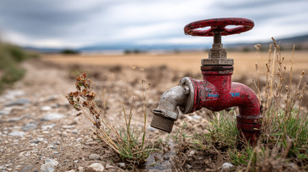 Closed tap over a sun-dried landscape