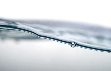A tranquil image depicting the smooth surface of water showcasing gentle waves and droplets, ideal for themes of relaxation, meditation, and natural beauty.