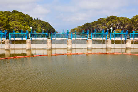 Canal lock in mediterranean coast. La albufera area, Valencia. Spain