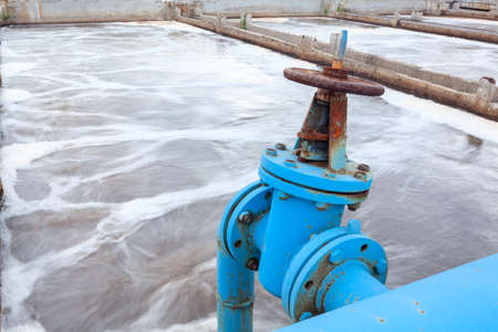 Industrial tap with blue pipeline for oxygen blowing into sewage water