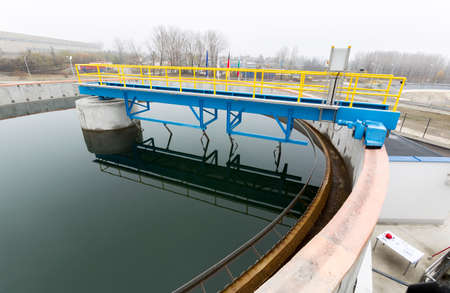 Modern sewage treatment plant. Sedimentation drainage round form.