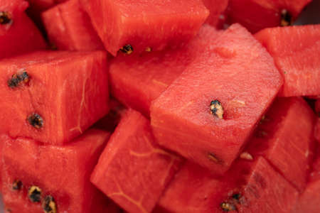 top view fresh watermelon blocks close up