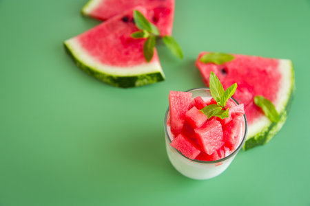 Red juicy watermelon and morning yogurt in a minimalist fruit composition.