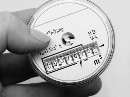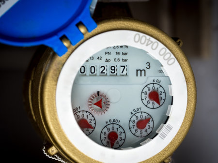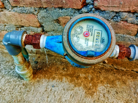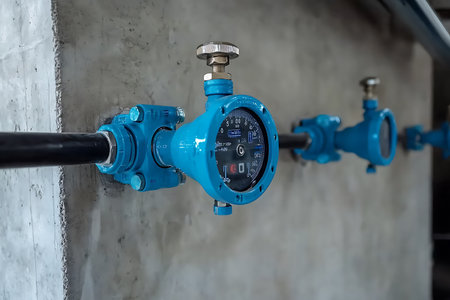 Close-up of a water meter installed on a pipe, tracking water flow to ensure accurate readings and better management of water resources.