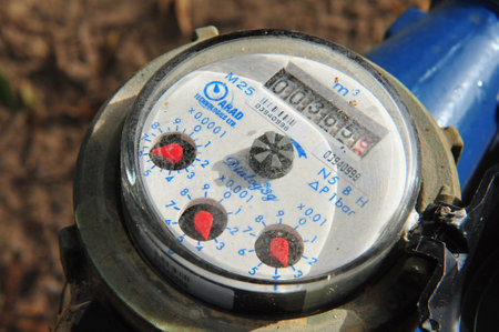 ASHDOD - DECEMBER 21: Water Meter Clock shows a local water consumption on December 21 2010 in Ashdod, Israel.