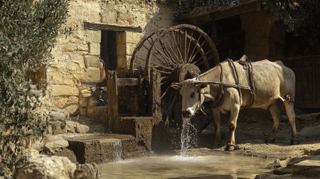 Water mill wooden wheel Generative AI