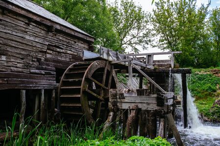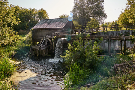 Watermill from wild river in nature
