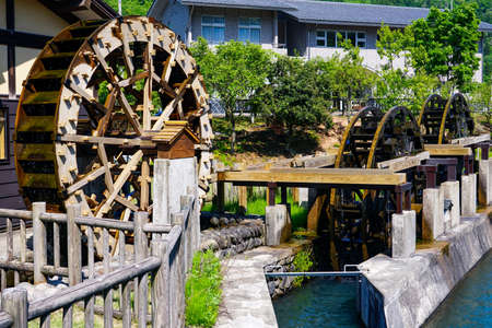 Triple water wheel using water from Ashiba River Head Shouko Road Station Ichishidani Asakura Mizu Station (Fukui City, Fukui Prefecture)