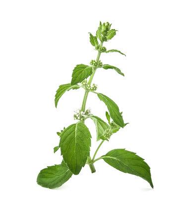 Mentha canadensis (Japanese mint, Corn mint, Field mint) flowers and leaves on a white background