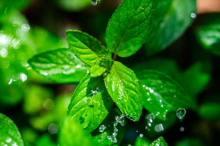 Mentha, also known as mint, with water drops