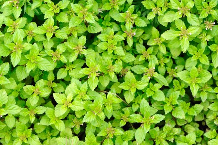 Bird eye view shot showing dense patch of healthy mint leaves