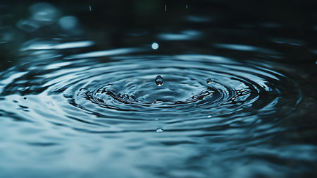 A single, perfect drop of water falls into a still, dark pool, its impact sending out a series of mesmerizing concentric ripples.