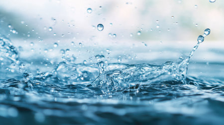 Dynamic shot of water splashing with droplets in motion, capturing the energy and fluidity of water.