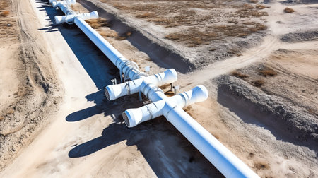 Industrial pipeline carrying water for irrigation, Contributing to agricultural activities. Generative AI.