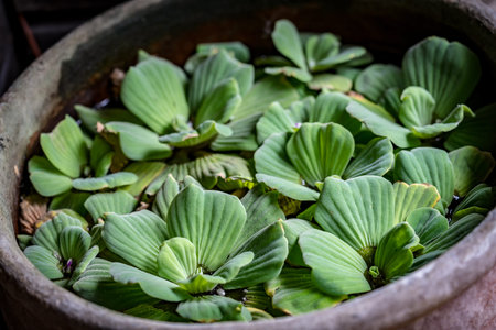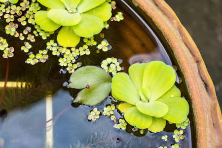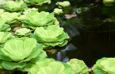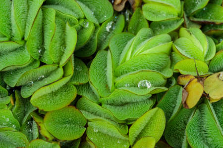 Close up of Water lettuec, Aquatic Plant,water lettuce (Pistia stratiotes) floating on pond with copy space