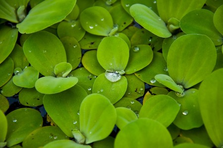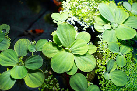 Green Ludwigia has green leaves that will grow up out of the water surface and form a carpet of pretty foliage. Nature garden with exotic evergreen plants
