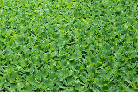 Lots of green Eichhornia crassipes aquatic plants in the lake
