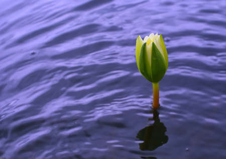 Water lilies in the swamp. Yellow water lily flower with green leaves in floating bog. Waterlilia in wild. Aquatic and invasive plants. Wildflower concept. Ecology and environmental protection.
