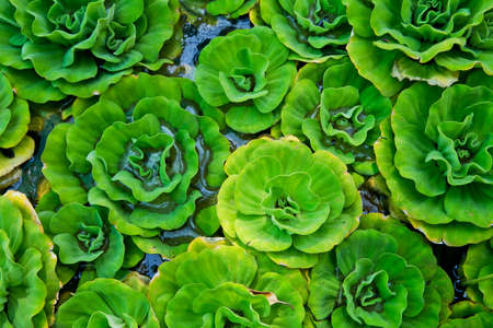 Many green water Lettuec or Pistia stratiotes on the water close up pattern for background and texture