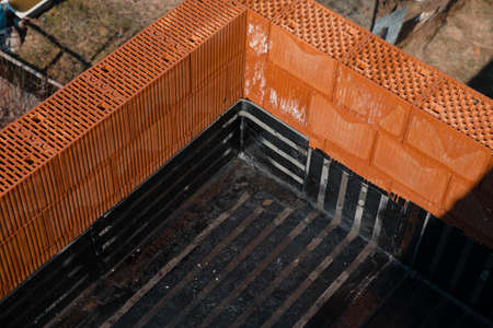 Besançon, France - March 18, 2014: Waterproofness work on a construction site.