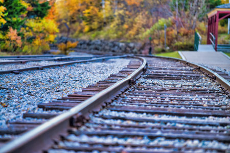 diminishing perspective close-up of railroad tracks in autumn