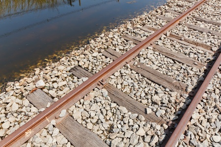 The Flooded Straight Railway Track with Timber Sleepers