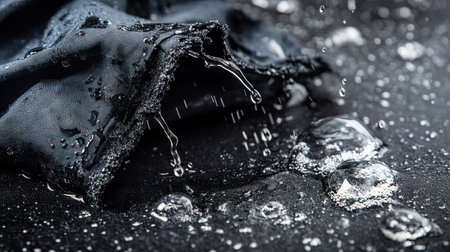 Close-up of a cloth being deep cleaned with water, showing tough stains lifting off. The cloth is wrung out with water droplets falling --chaos