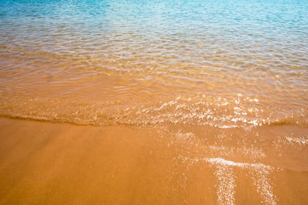 Soft wave of the sea on the sandy beach. Sea wave and gold sand.
